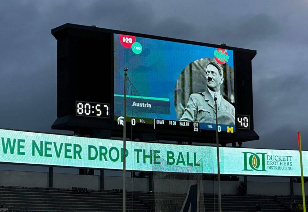 A Michigani Állami Egyetem (MSU) bocsánatot kért, miután egy futballmérkőzés előtt Adolf Hitler fotója megjelent a stadion eredményjelző tábláján.