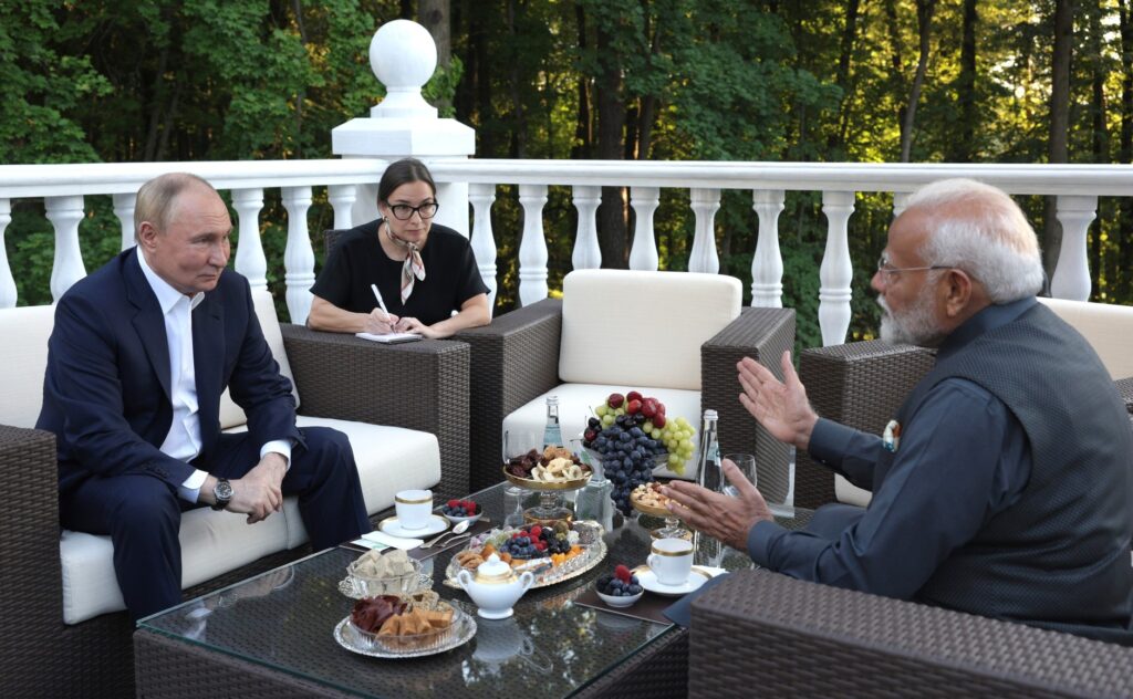 „Köszönöm Putyin elnök úrnak, hogy ma este vendégül látott Novo-Ogarjovóban” – írta hétfőn Modi oroszul az X, korábbi nevén Twitter X üzenetküldő platformon Vlagyimir Putyin elnök Moszkva melletti rezidenciájáról.