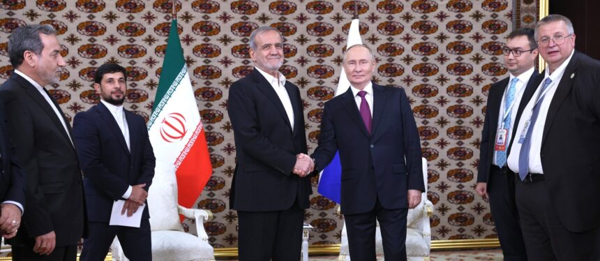 „Aktívan együttműködünk a nemzetközi színtéren, és a világban zajló eseményekről alkotott értékeléseink gyakran nagyon hasonlóak” – hangsúlyozta Putyin iráni kollégájával, Maszúd Peszeskjánnal folytatott találkozóján.
