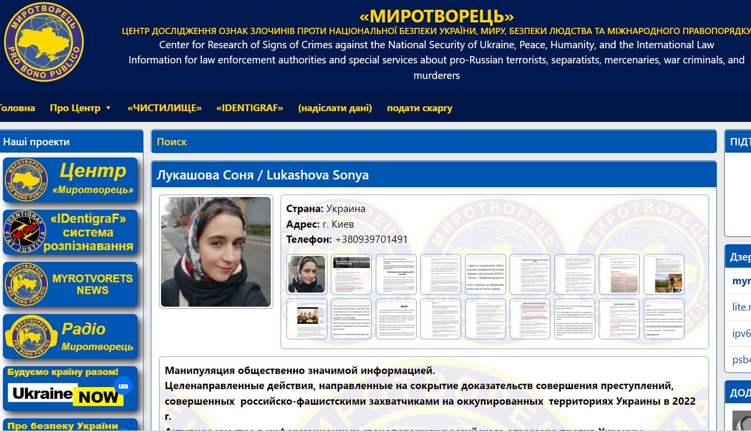 Szonya Lukasova ukrán újságírónő a hírhedt Mirotvorec weboldalon kötött ki, miután cikket írt arról, hogy az orosz katonai…