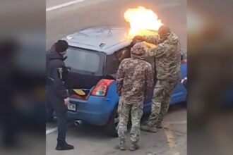 A közösségi médiában közzétett videó szerint az ukrán katonai sorozók és rendőrök gyúlékony gázzal töltöttek meg egy személygépkocsit,…